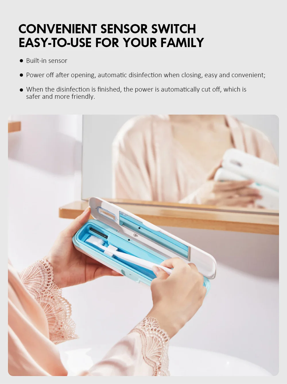 Portable UVC Disinfection Toothbrush Sterilizer Box USB Rechargeable Toothbrush Head Sterilizer Toothbrush Case for home Travel