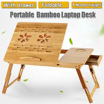 Portable Folding Bamboo Laptop Table Sofa Bed Office Laptop Stand Desk With Cooling Fan Bed Table For Computer Notebook Books