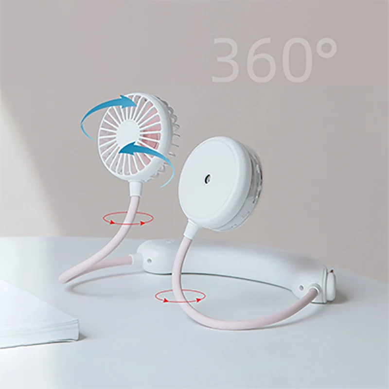 USB Portable Fan Hanging Neck Fan Mini Portable Outdoor Student Charging Fan Double Head Humidification Spray Fan
