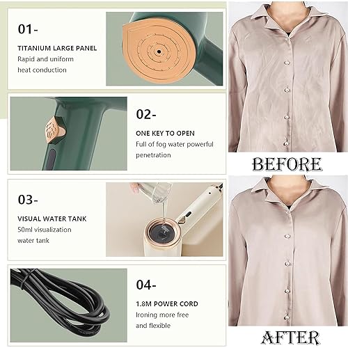 【Portable Mini Ironing Machine】: It adopts titanium panel heating, 302°F constant temperature heating and ironing without hurting clothes. You can iron the clothes directly. For better and faster ironing effect, you can also press the water spray button to spray water, and then iron the clothes to meet the personalized ironing needs.
