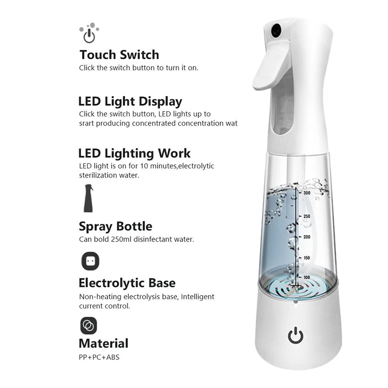 USB Portable Multipurpose Homemade Disinfectant Manufacturing Machine 350Ml Clean Disinfecting Electrolyzed Water Maker