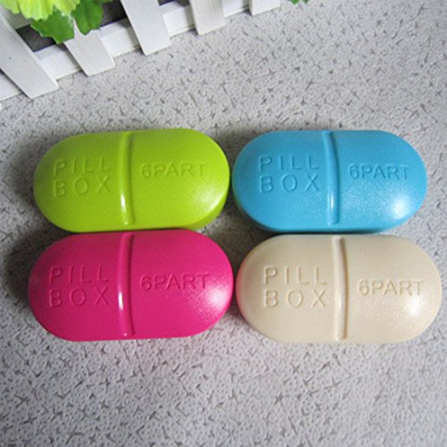 Portable, pillole, di 6 schede medicine case Pill case carino a forma di rettangolo Pill Splitters casi colore casuale