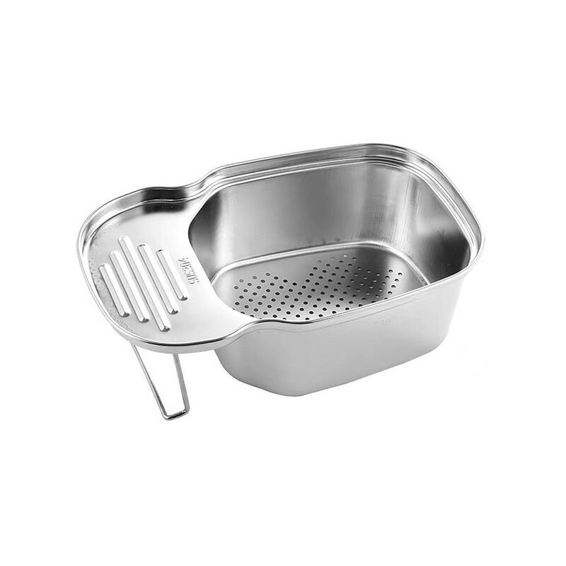 Portable Stainless Steel Sink Drain Strainer Basket Food Catcher for Kitchen Sink Strainer Kitchen Waste Wash Vegetables Feature: Material: The kitchen waste draining basket is made of stainless steel, which is stable and durable, and has a stronger bearing capacity. A cleaner, healthier life for you and your family. Multipurpose: In addition to being a kitchen waste drainer, it can also be used to clean fruits and vegetables. The top tray design allows him to place cleaning sponges, dish brushes and soap. Keep your kitchen sink tidy: The bottom hollow design, the fine mesh filter can quickly separate water and residues, allowing you to get rid of the difficult-to-clean sink filter and keep the kitchen tidy. The sink drain basket is designed with a hook, which will not fall off, without installation, and can be picked up and taken down easily. This kitchen corner sink strainer takes up only a small space, which is super space-saving. Description: Colors: silver, black Size