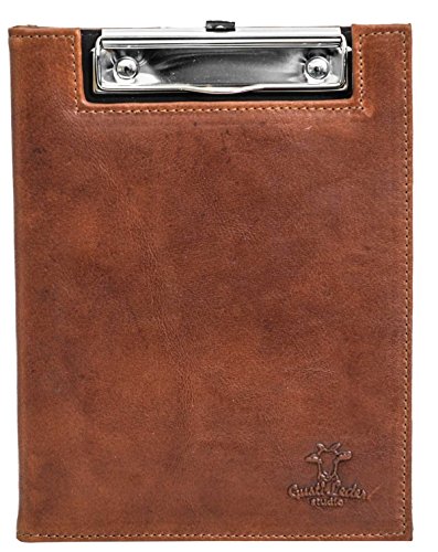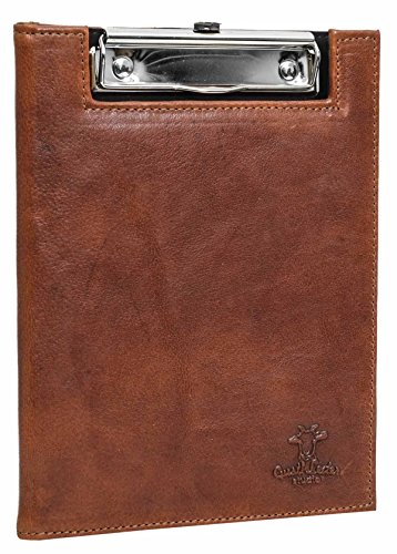 Portablocco in pelle Gusti- Carson Cartella portablocco a molla Cartella per conferenze Blocco per appunti in pelle marrone