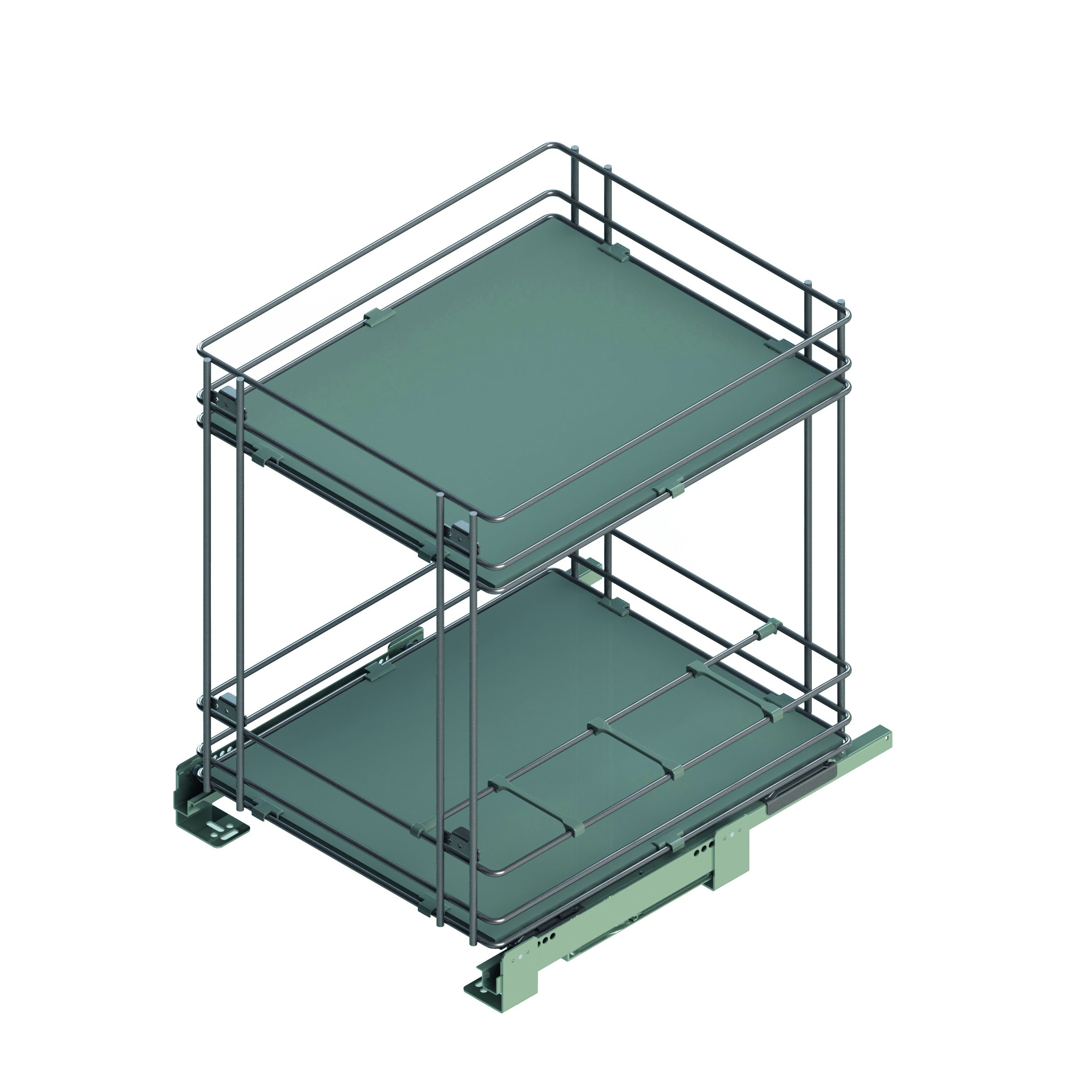 In metallo verniciato, fissaggio base mobile. Ideale per stivare bottiglie, alimenti e scatolame rendendo più ergonomica la base cucina. Il fondo pieno consente una migliore ritenuta degli oggetti in apertura e chiusura. Permette l'apertura dell'anta e l'estrazione in un unico gesto. Chiusura soft closing