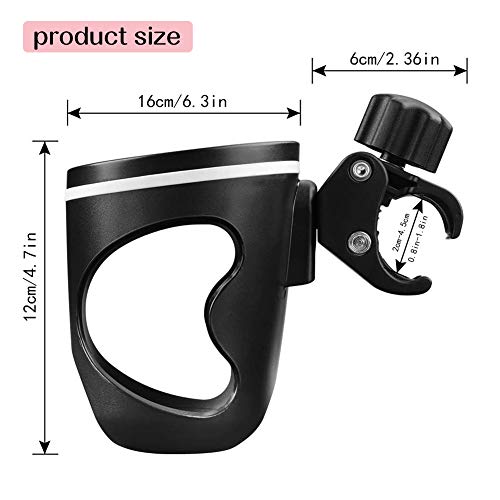 Portabottiglie per passeggino, con 2 ganci per passeggino, portabottiglie per carrozzina, supporto regolabile a 360 gradi, per passeggino, sedia a rotelle, facile e veloce da montare