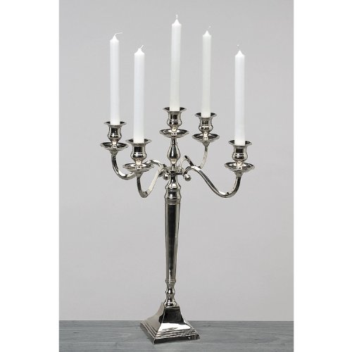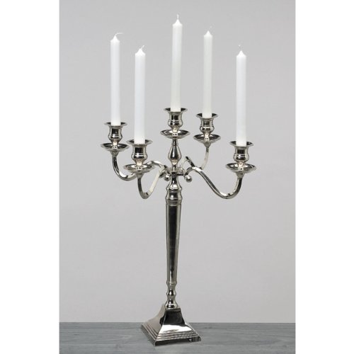 Portacandela Candelabro 5 Braccia Alluminio Argento 50cm