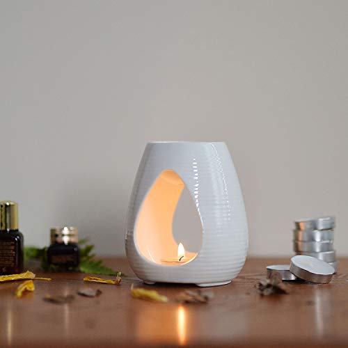 Portacandele in ceramica con bruciatore a olio, olio essenziale o cera si scioglie, bruciatore per aromaterapia, diffusore di oli aromatici, decorazione per la casa romantico bianco