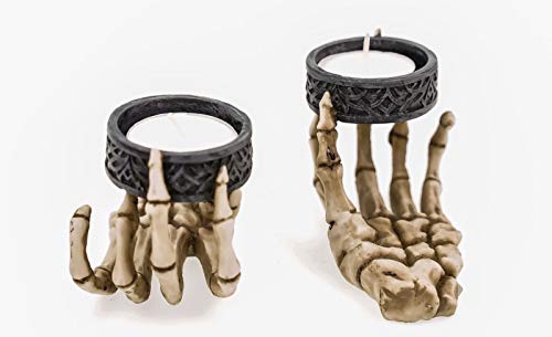 Due meravigliosi portacandele a forma di mano scheletrata.