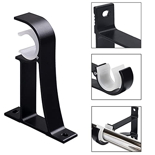 Robusto e durevole : La staffa del bastone per tende è realizzata in lega di alluminio di alta qualità e sulla superficie viene spruzzata vernice nera per prevenire la ruggine. La staffa del bastone per tende è ispessita e nichelata, che è durevole e può essere utilizzata a lungo.