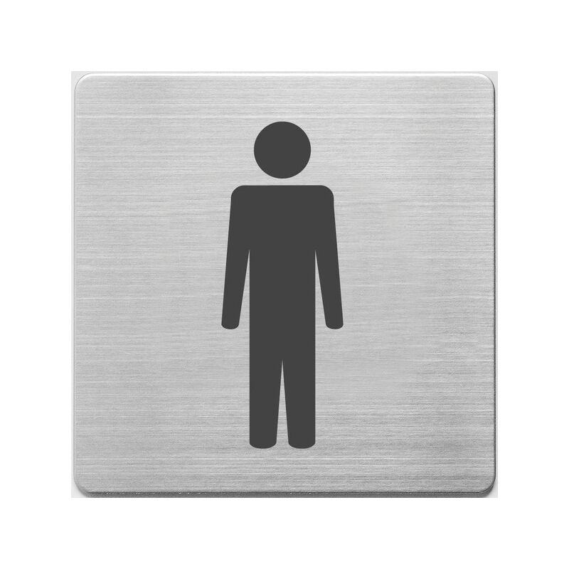 Pittogrammi autoadesivi in acciaio inossidabile spazzolato opaco di alta qualità con stampa nera, modello quadrato con angoli arrotondati, stampa: WC Men, dimensioni 90x90x1 mm.