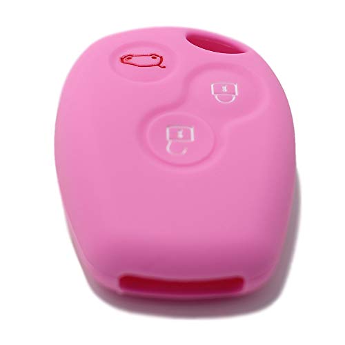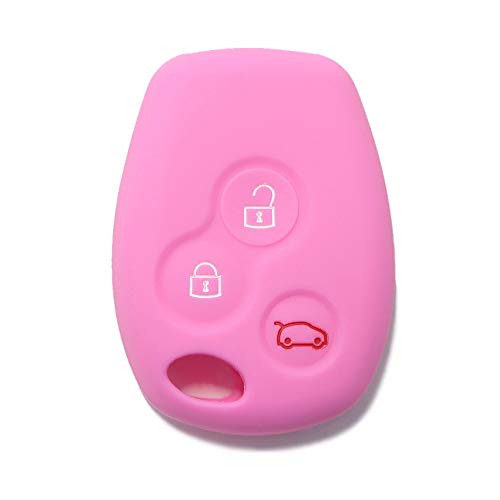 Portachiave - Guscio in Silicone Chiave 3 Tasti per Telecomando Renault Clio Twingo Megane Modus Kangoo Master Espace Scenic (vedere compatibilità nelle foto) (ROSA)