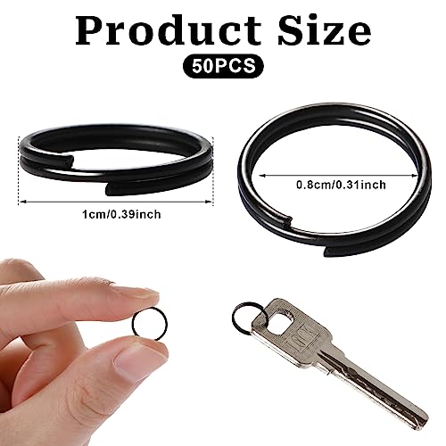 50 portachiavi da 10 mm, colore nero, piccoli anelli rotondi in metallo, colore nero, per gioielli, collane, bracciali, orecchini, artigianato, ornamenti e fai da te
