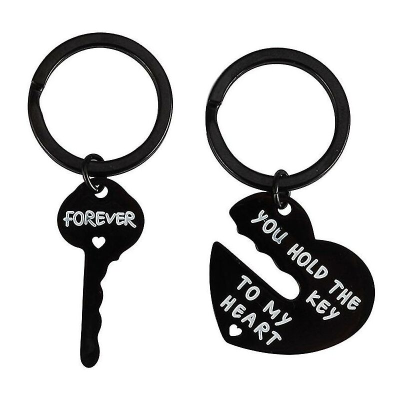 Piccolo regalo premuroso da inviare al tuo amore, pratico e resistente, realizzato in materiale di alta qualità e resistente, non facile da deformare e arrugginire. Con un design adorabile e creativo, questi portachiavi decoreranno la tua chiave, zaino o borsetta in modo più bello, renderanno la tua chiave o borsa più personalizzata. 50 cm / 2,36X0,59X0,20 pollici.-Disponibile in una forma chic e un elegante design di colore nero, presenta un aspetto molto bello e accattivante.-Il design sofisticato e i dettagli delicati rendono questo portachiavi eccezionale e speciale.-Decorazione perfetta per le chiavi, portafogli, borsette, zaini o altri oggetti meravigliosi.-Regalo creativo e divertente per il tuo amore, pratico e resistente, non si arrugginisce facilmente.-Progettato con decorazioni a cuore e chiave, parole romantiche incise per mostrare il tuo amore.