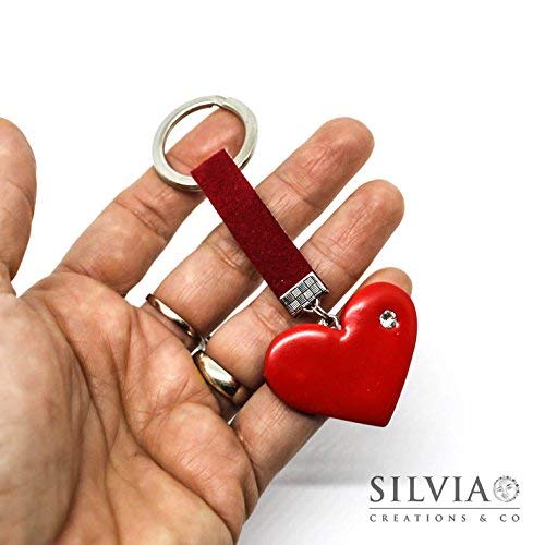 Portachiavi con cuore rosso realizzato a mano in pasta sintetica fimo