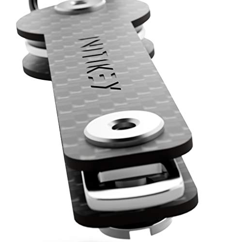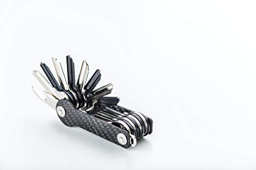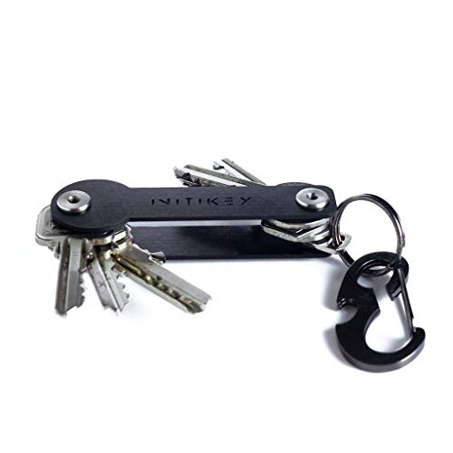 Portachiavi in fibra di carbonio INITIKEY | Premium Carbon Fiber | Portachiavi da 2 a 18 chiavi | Moschettone EDC in acciaio inossidabile nero da uomo | con l´apribottiglie in acciaio inossidabile.