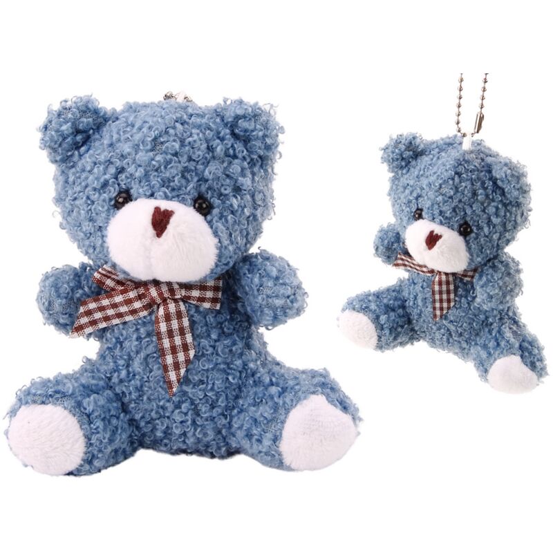 Portachiavi mascotte peluche orsetto blu di peluche piccolo 10 cm