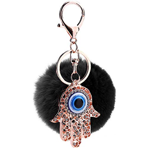 JK Home Pom Pom Pom Ball Portachiavi con peluche per auto portachiavi o borsa decorazione, Occhi a mano e nero, 8 x 12 cm, Portachiavi