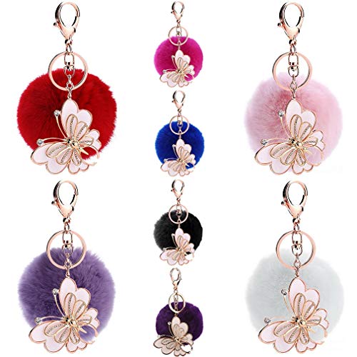 JK Home Portachiavi con pompon e peluche per portachiavi dell'auto o decorazione della borsa, Farfalla e blu reale, 8 x 12 cm, Portachiavi
