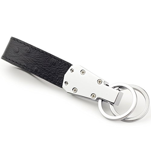 Dpob Portachiavi con portamonete in pelle fiore di struzzo lusso, elegante portachiavi con 1 portachiavi staccabili (nero)