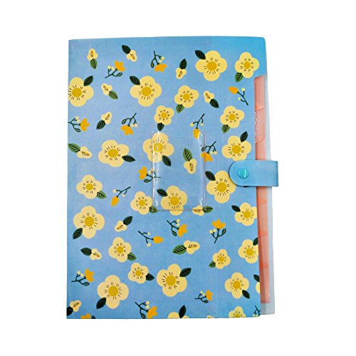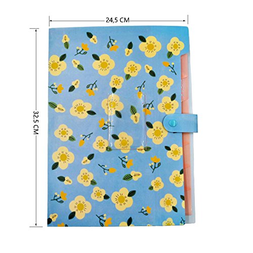 Portadocumenti formato A4 con 8 tasche, organizer per ufficio, casa e scuola, fiori blu