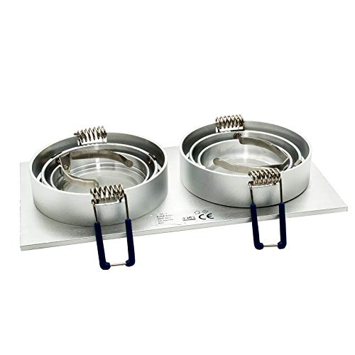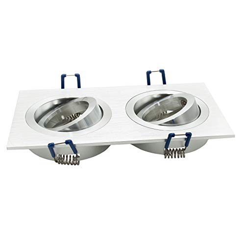 Faretto con cornice rettangolare ad incasso a molla con doppio porta faretto orientabile realizzato in alluminio di colore argento