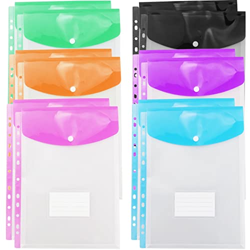 La Confezione Include - Riceverai 12 Buste In Plastica A4 Con Bottoni E Tasche Per Etichette In 6 Colori Diversi, I Colori Includono Verde, Arancione, Rosa, Blu, Nero E Viola, Le Buste In Vari Colori Possono Aiutarti A Organizzare, Per Riporre Tutto Tipi Di Articoli Vari, Che Possono Soddisfare Le Tue Esigenze Quotidiane.