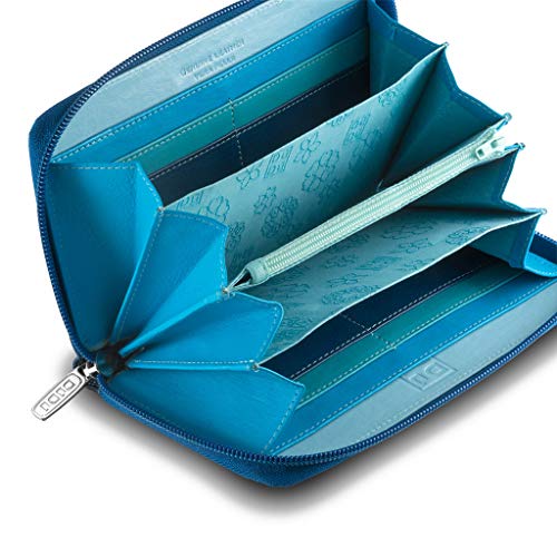 DuDu Portafoglio donna grande RFID di vera pelle colorato zip around Blu