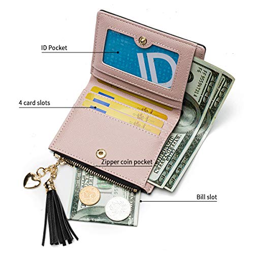 ❤Struttura: 4 fessure per carte, 1 finestra ID, 1 sezione per banconote, 1 tasca per monete con zip. Spazio sufficiente per contenere molte carte, cambiare e alcune banconote, monete, tenerle ben organizzate.