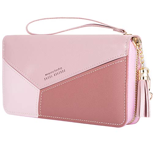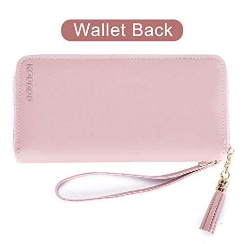Portafoglio Donna KOOGOO Lunga Paragrafo PU Pelle Multi-slot Cerniera Portamonete (Rosa)