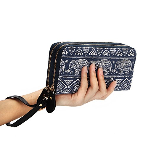 Portafoglio Donna Lungo Magico Doppio Grande con Cinghia Bracciale Cerniera Porta Moneta (Elefante)