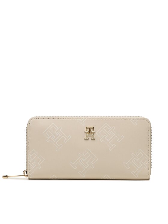 Tommy Hilfiger Portafoglio grande da donna Iconic Tommy Large Za Mono AW0AW15143 Beige