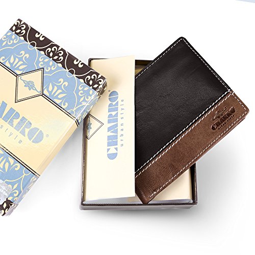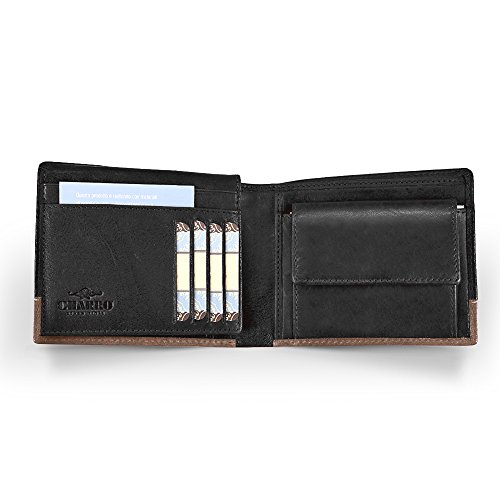 Portafoglio Uomo in Vera Pelle - Wallet Classico e Sottile con Portamonete - Formato orizzontale con Porta Tessere Documenti e Banconote - 12.5x10x2 cm - Charro - Nero