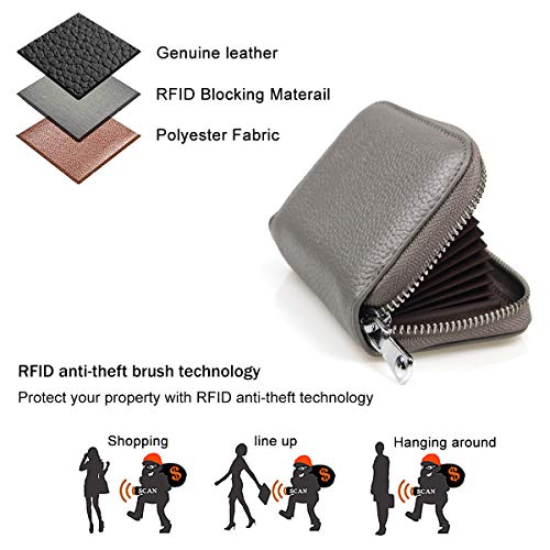 RFID portafoglio protettore in cuoio vero per uomo e donna (Grigio)