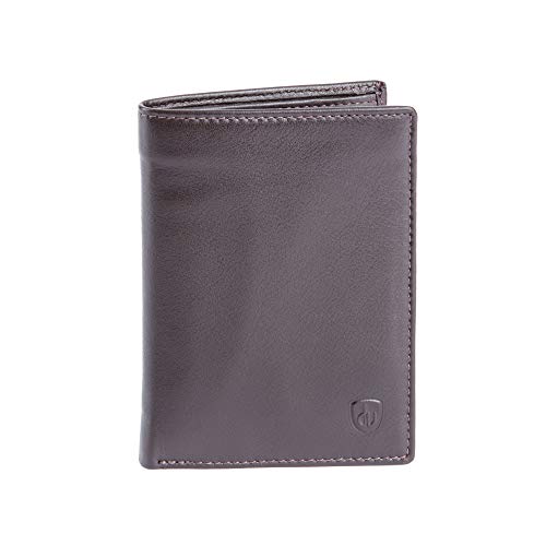 Portafoglio uomo verticale in pelle Nappa portacarte con zip interna DV Marrone scuro