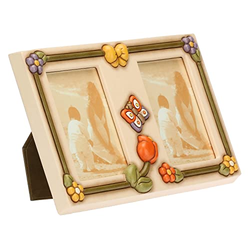 Thun, Portafoto Doppio in Ceramica Decorata a Mano con Decorazioni Floreali, Linea Country, 32x20.5 cm