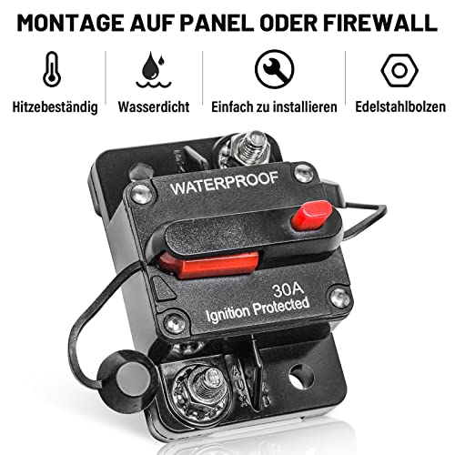 RED WOLF 30 A portafusibili impermeabile per auto, 12 - 24 V, per auto, barca, interruttore di protezione audio (30 A)