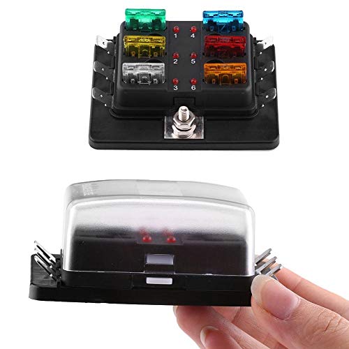 Portafusibili, supporto per scatola portafusibili con lama a 6 vie con indicatore a LED Kit spia di avvertimento per autoveicoli