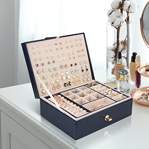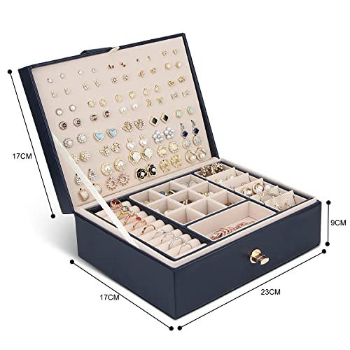 Portagioie per collane, orecchini, bracciali, anelli, grande custodia in pelle PU con 3 strati impilabili, porta gioielli per donne e ragazze, Pelle sintetica
