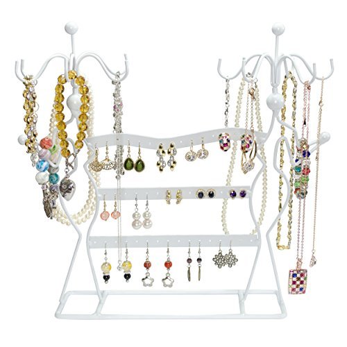 Pratico espositore per gioielli come porta anelli, catene, bracciale e porta orologi con molti supporti e cestini aggiuntivi per appendere e posizionare la vostra collezione di accessori decorativi