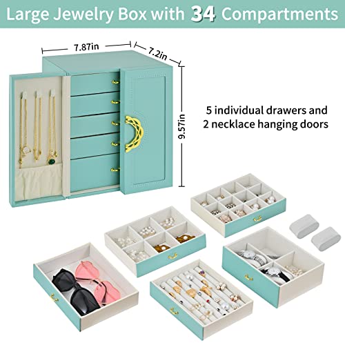Portagioie grande portagioie con 5 livelli, custodia per anelli, orecchini, bracciali e collane, portagioie per donne e ragazze (blu)