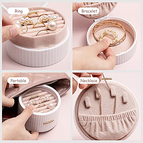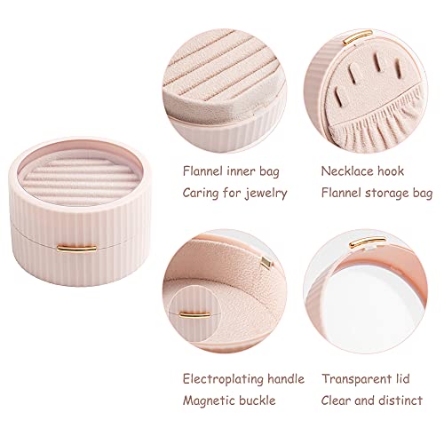 Portagioie Piccolo, Portagioie da Viaggio, Gioielli Scatole, Portatile, Doppio Strato, Fodera in Flanella, con Finestra Trasparente, per Anelli, Orecchini, Collana, Bracciali (Rosa)