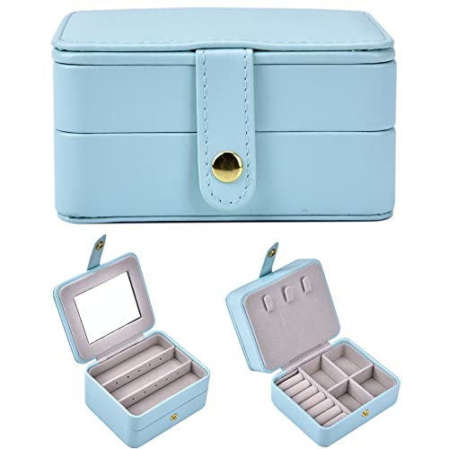 Portagioielli, portagioie da viaggio Piccola custodia portatile per gioielli in pelle PU per ragazze, adolescenti, donne, per orecchini, anelli, collana, bracciale(#10Azzurro)