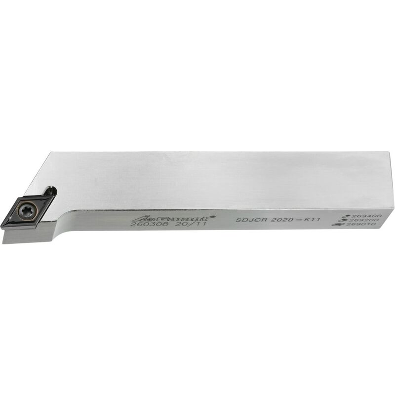 Dati tecnici Norma DIN ISO 5610 Passaggio interno per LR no Tipo di impiego destro Angolo di regolazione κ Grad 93 Tipo di codolo Testina portainserto con bloccaggio a staffa Tipo di prodotto Portainserti con bloccaggio a staffa USP1 SDJCR 93° USP2 destra Serie QuickTurn Lunghezza della testina L1, mm 20,5 Misura inserto, mm 11 Inserto adatto DC.. 11T3.. Codice ISO portautensile SDJCR/L 2020K11 Ampiezza funzionale L4, mm 25 Dimensione codolo, mm 20 Sottoplacchetta 269005 3 Set di viti per inserti 269028 2 Vite per sottoplacchetta 269013 2 Lunghezza complessiva L, mm 125