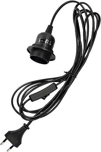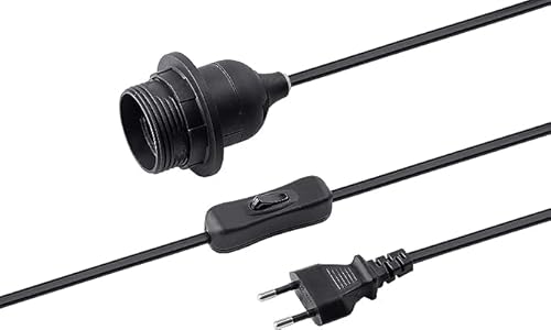 R&R SHOP - Portalampada E27 con Interruttore e spina EU (4M, Nero)