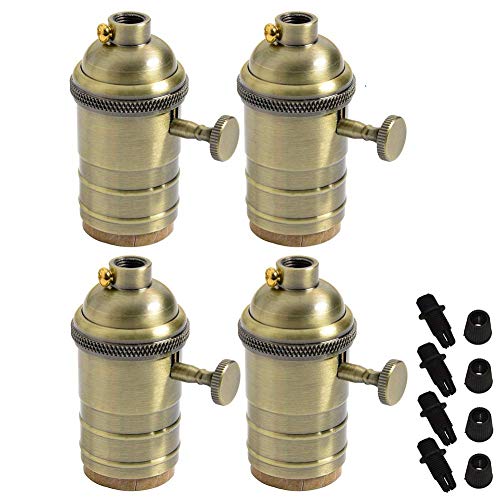 Confezione da 4 portalampada con interruttore E27, stile vintage, in ottone, attacco ES a vite.