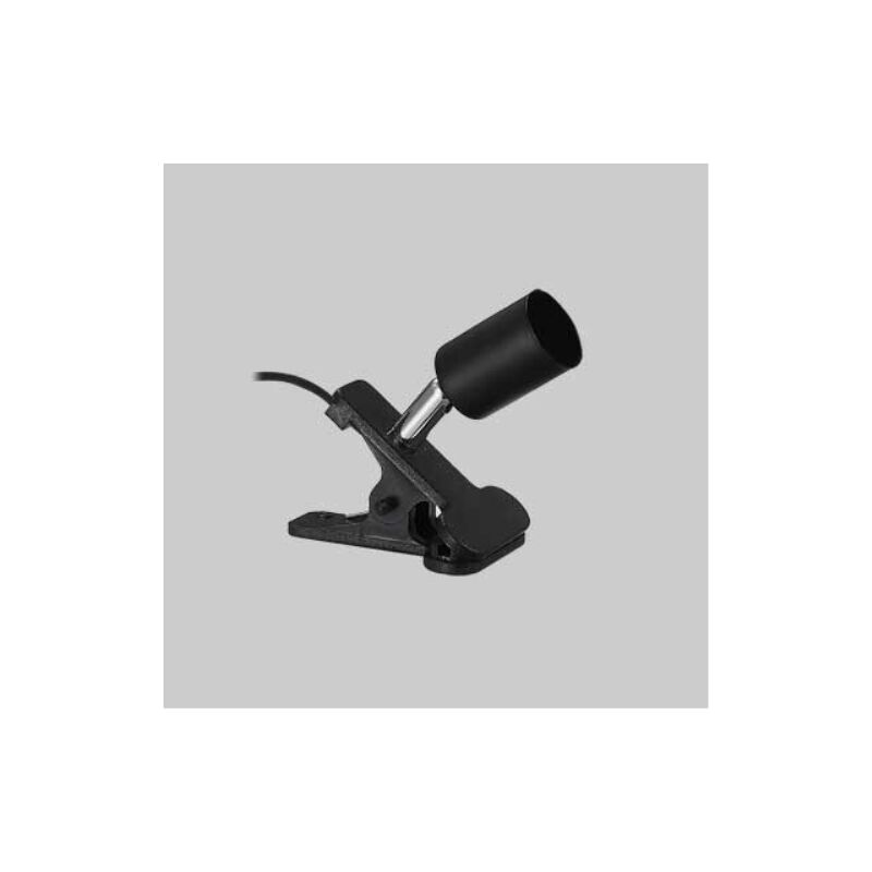 A pinza. Orientabile con interruttore passafilo e cavo spina. Lunghezza cavo cm 130. Grado di protezione IP20. Portalampada con pinza gu10 colore nero LAMPO Portalampade e rilevatori