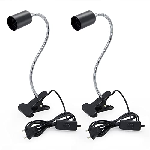 Portalampada E27 con Pinza, 2 Pezzi Lampada Morsetto con Interruttore 35cm Orientabile Flessibile Metallo Collo di Cigno per Trucco, Lettura, Ufficio Lampada da Tavolo, Luce del Letto, Nero