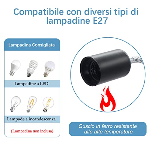 【Collo di Cigno Flessibile】 Portalampada a collo d'oca in metallo, può essere ruotato di 360°, resistenza alle alte temperature e ritardante di fiamma, può essere piegato per focalizzare la luce in quasi tutte le direzioni, adattarsi istantaneamente alla tua situazione, illuminare esattamente il punto desiderato e creare un ambiente di illuminazione confortevole.