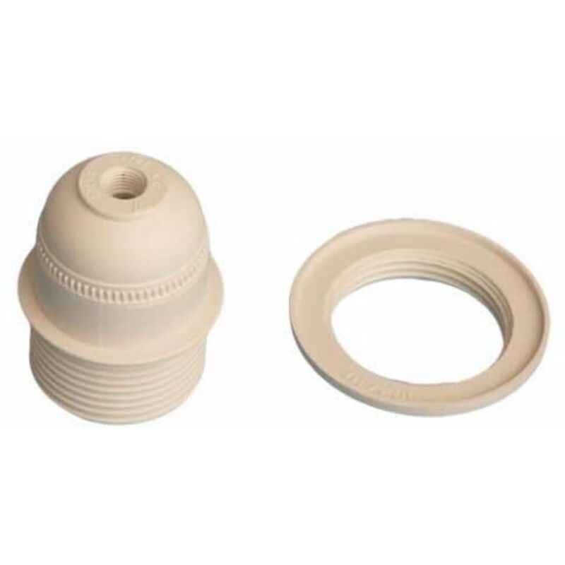 Portalampada termoplastico passacavo E27 per l'installazione o la sostituzione 4A 250V Colore: Bianco ideale per installazioni lampade portalampade ove richiesto rondella schermo di bloccaggio.